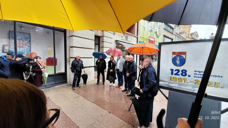 Svaka udruga je na po 10 plakata izložila kratku povijest brigade: nastanak, prve borbene akcije, odlazak na ličko bojište, prva lička ratna zima i pogibije pripadnika, držanje bojišnice u vremenu 1992.-1995. te sudjelovanje obiju brigada u operacijama Bljesak i Oluja. Interesantno je spomenuti da su obje brigade bile predviđene za operaciju vojnog oslobađanja Istočne Slavonije a da je 128.br bila sudionik operacija Maestral i Južni potez.