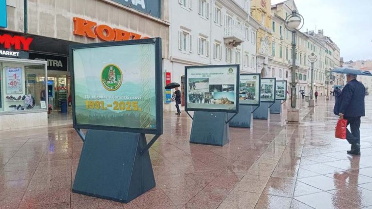 Poslije zajedničke tiskovne, na kojoj je govoreno o ratnim putevima obiju brigada i programu obilježavanja 34. obljetnice otvorena je izložba plakata na postamentima na Korzu ispred Gradske uprave.